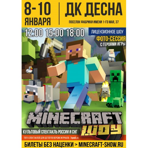 Вы готовы к незабываемым приключениям? Приглашаем вас и вашу семью на УНИКАЛЬНОЕ новогоднее представление, которое перенесет вас в увлекательный мир Майнкрафта!
