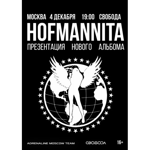 Большой концерт с презентацией нового альбома а также всеми хитами HOFMANNITA состоится 4 декабря в клубе СВОБОДА. Москва, 16+.