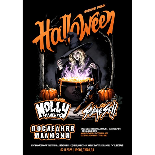 Вечером 2-го ноября, в стенах клуба Китайский летчик Джао Да, где даже воздух пропитан мистикой, тебя ждут живые выступления групп: Molly Fancher, Savage Sexx, Последняя Иллюзия + специальные гости Михаил Комаров - группа "Misha Mar", Екатерина Корочкина - группа "Пика" и другие.