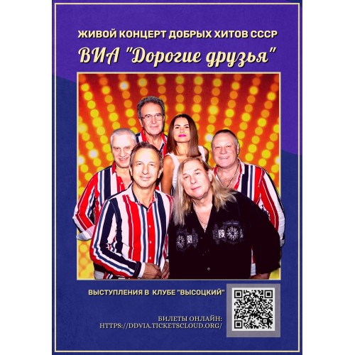 В живом концерте примет участие расширенный состав ВИА «Дорогие друзья» , а также на сцену выйдут приглашенные музыканты: экс- и действующие участники любимых групп эпохи СССР!