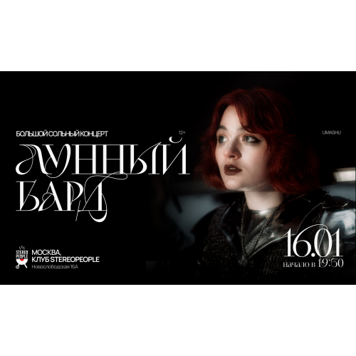 «Лунный бард» согревает Москву зимним вечером с большим сольным концертом — вечером, полным тепла, эмоций и искренности. Вас ждёт уютная атмосфера, новый мерч и пронзительные, душевные песни, в которых можно укрыться от суеты.