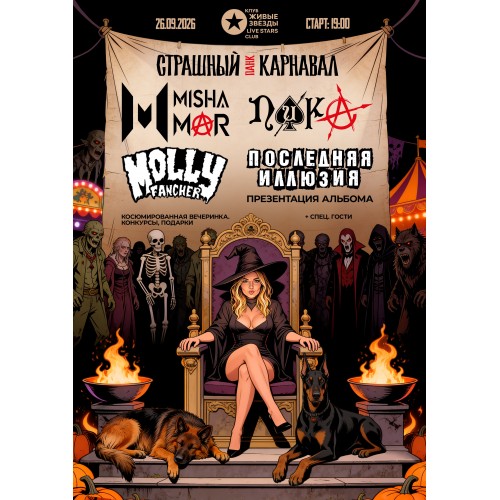 Это концертное безумие в духе Хеллоуина, где оживают темные образы, сцена пылает живыми выступлениями, а каждый гость становится частью жутко красивого шоу.
