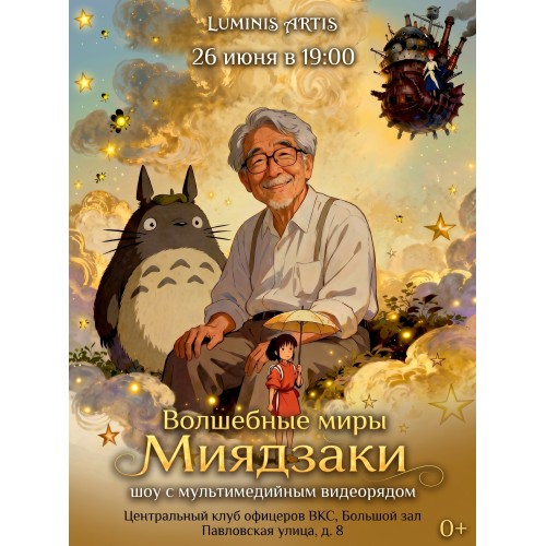 Легендарный японский режиссёр-аниматор Хаяо Миядзаки подарил нам красочную вселенную, в которой живут удивительные персонажи. Здесь всё одушевлено и всё взаимосвязано. Вам вполне может встретиться добрый дух леса, живущий в ветвях деревьев. Или ехидный котобус и рыбка, которая хочет жить на суше.