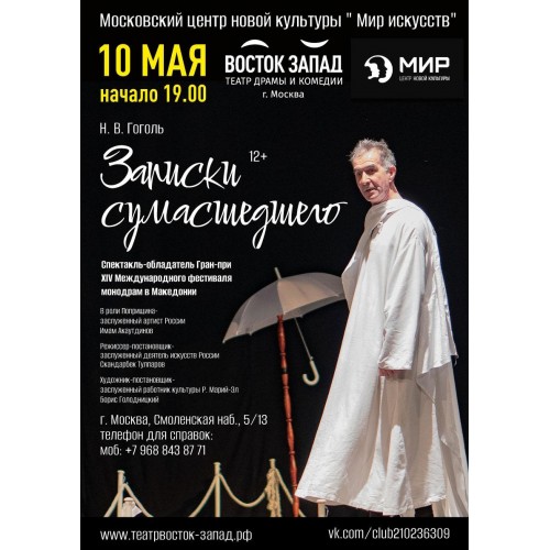 На сцене - стремительный главный герой в белой рубашке, читающий одну за другой свои дневниковые записи. Работа не приносит Аксентию удовольствия и продвижения, а любовь отворачивается от него. Признаки сумасшествия проявляются постепенно, но необратимо. Попадание в сумасшедший дом герой воспринимает как прибытие в Испанию. Найдет ли главный герой свое успокоение?
